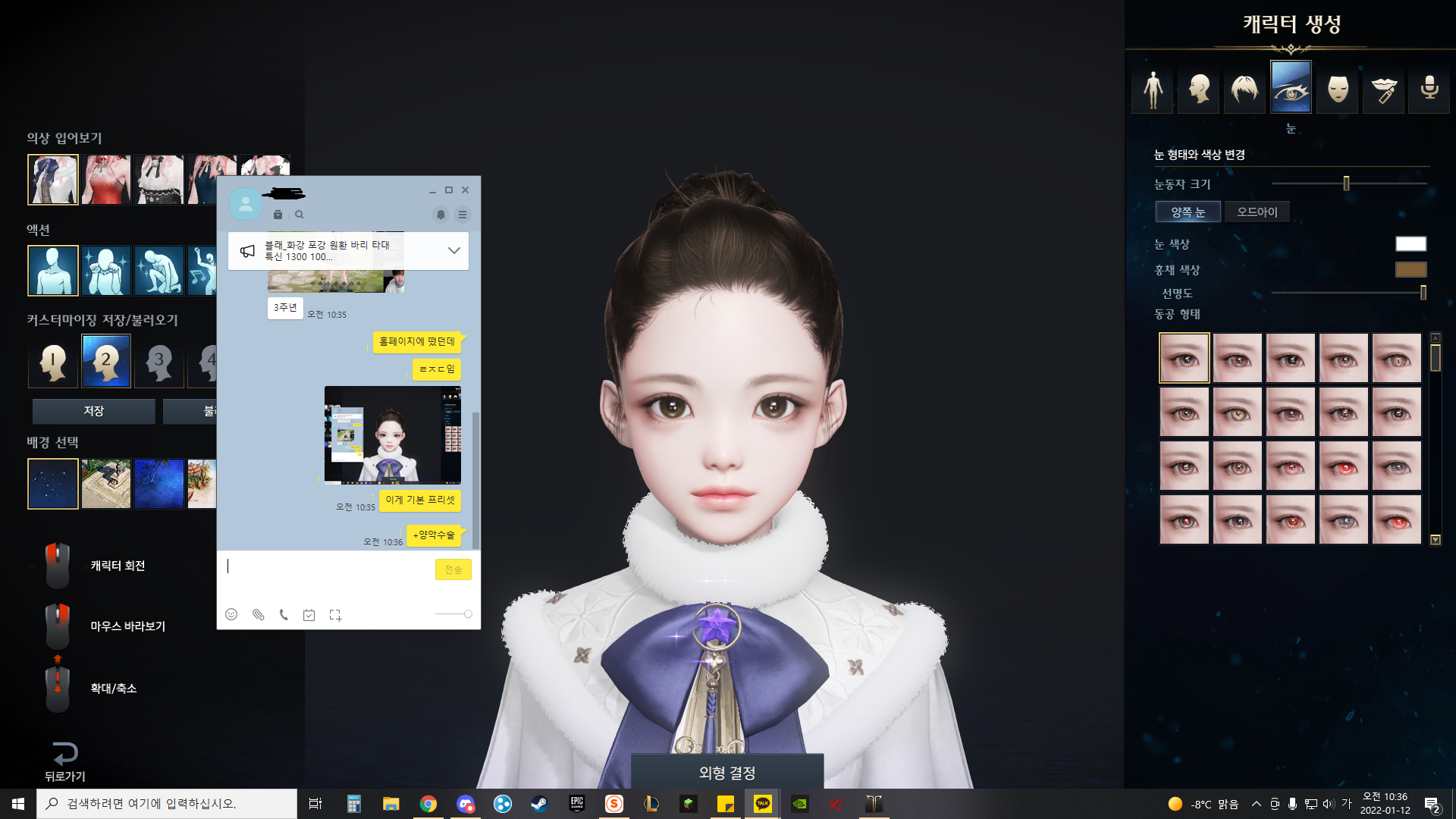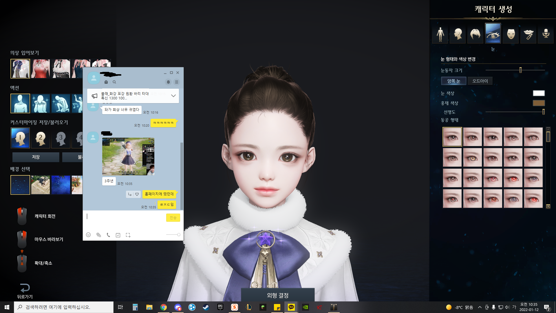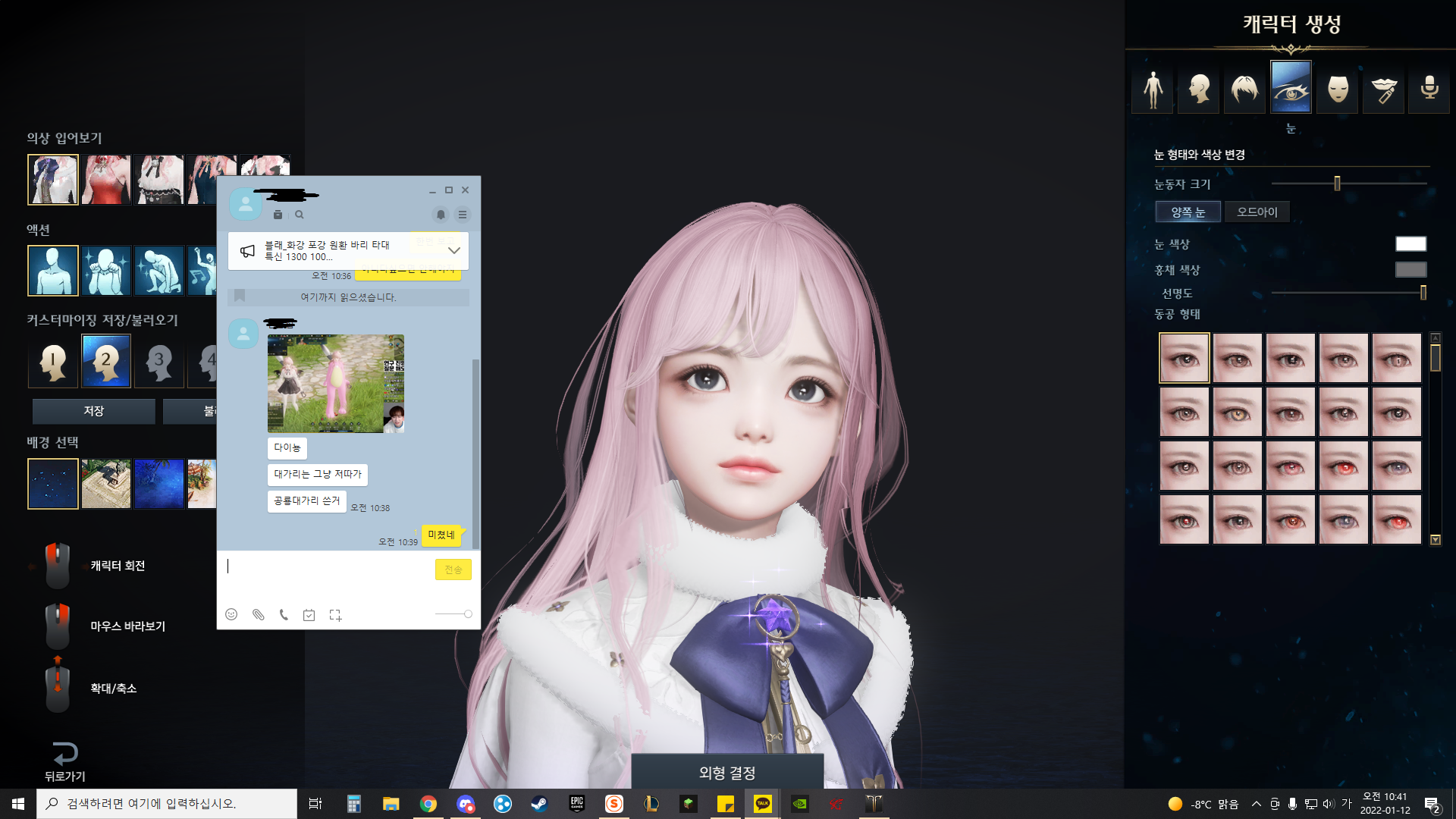 게임 캐릭터라 그런지 크게 설정된 눈과 입을 살짝 만져줍니다