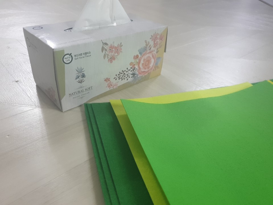 약간 실물구현(?)을 위해 준비한것 : 펠트지,각티슈,가위,글루건,유성펜