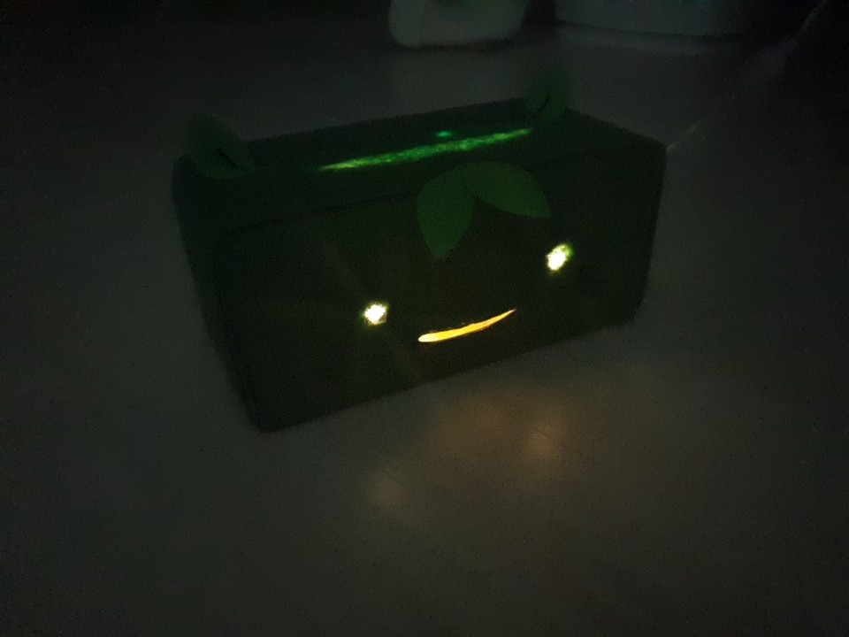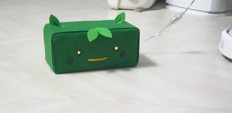 그리고 자르고 붙이고, 안에 알전구를 넣어보았어요!