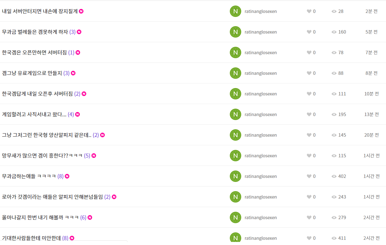 1. ratinanglosexen => 관심이 고프신 분