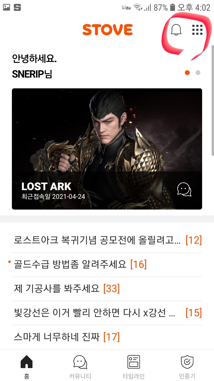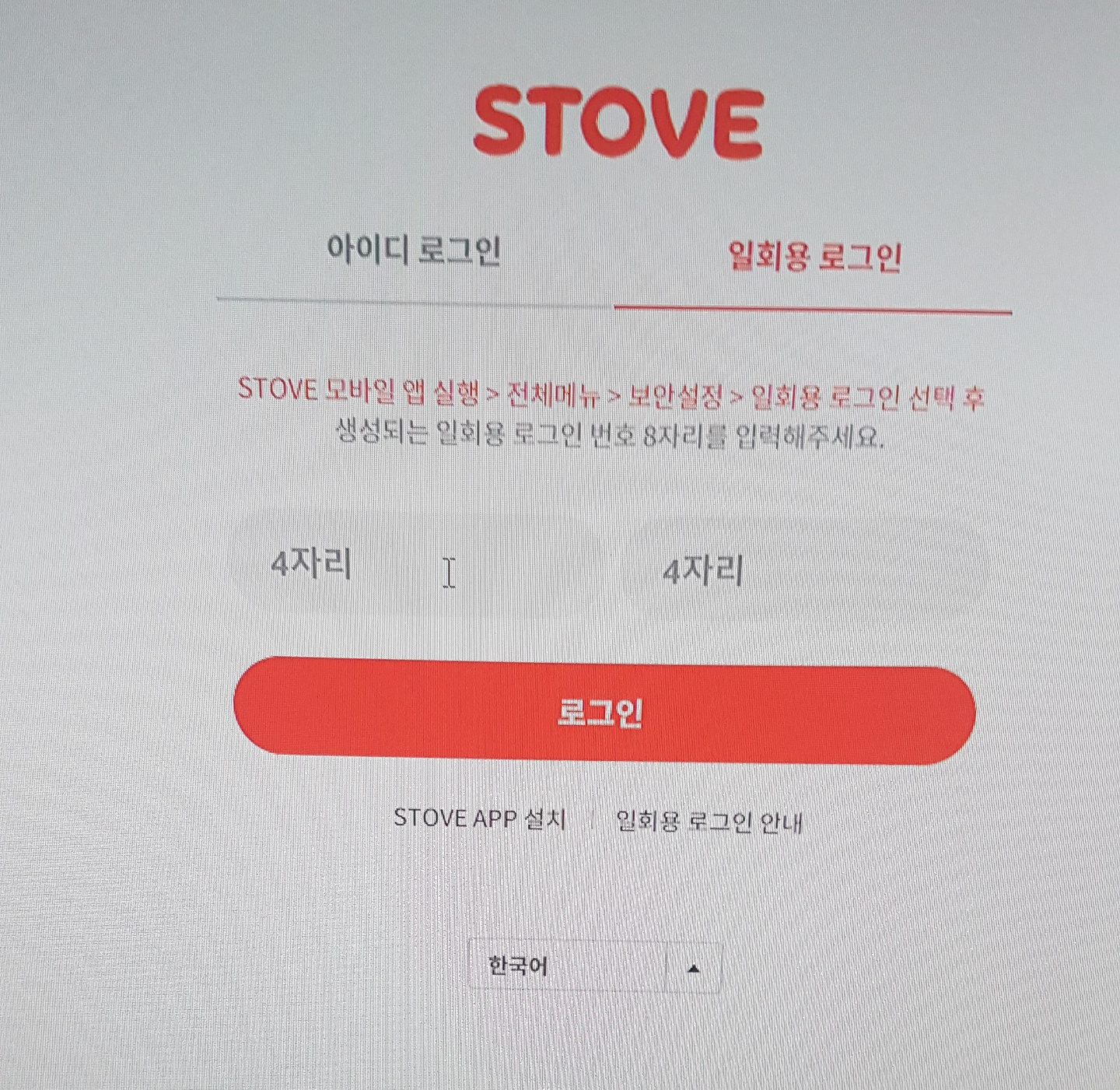 스토브 어플 메인창 우측 상단 메뉴->보안설정 ->일회용 로그인 이걸