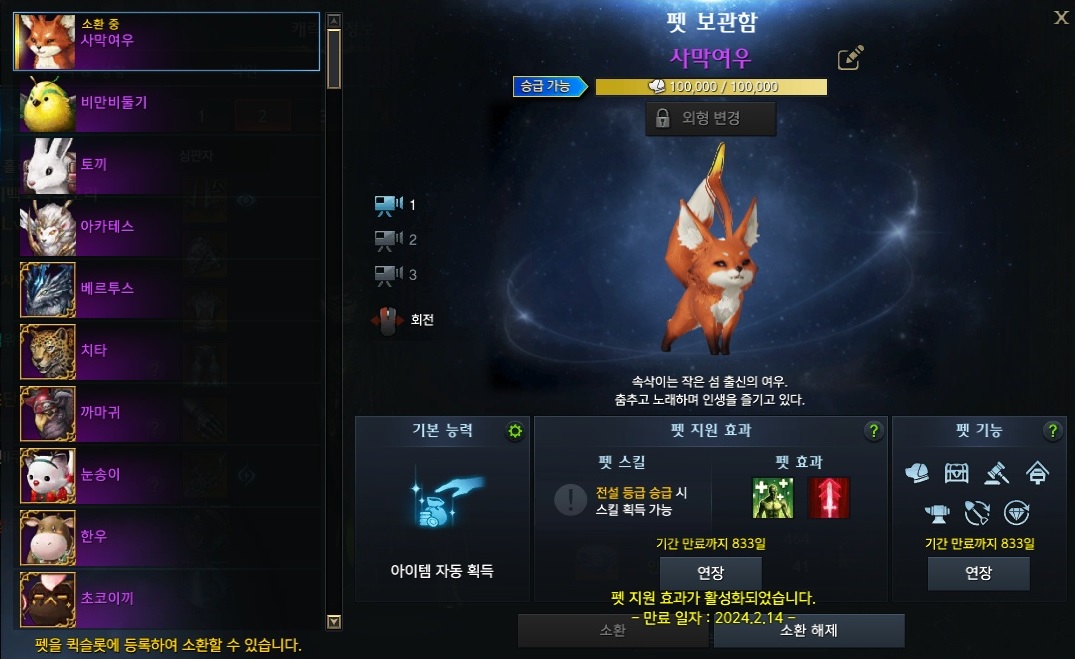 펫 기능 만료기간... 1