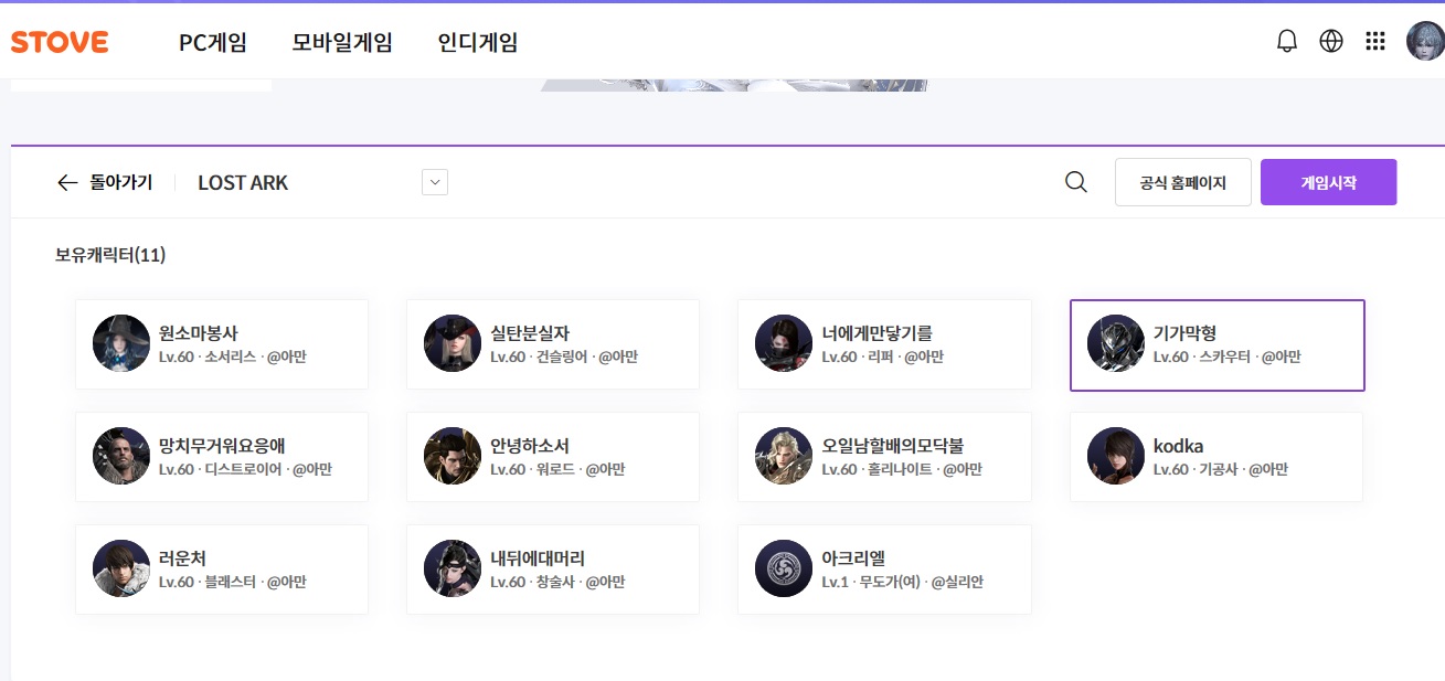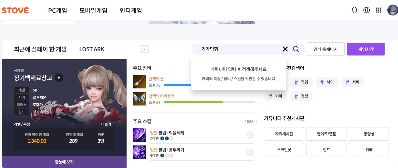 로아 공홈 전정실에서 캐릭터 검색이 안되시면 3