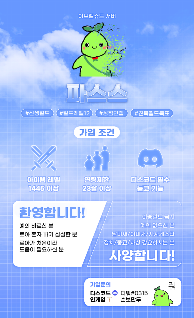 ○""파스스"" 길드에서 길드원 모집합니다!