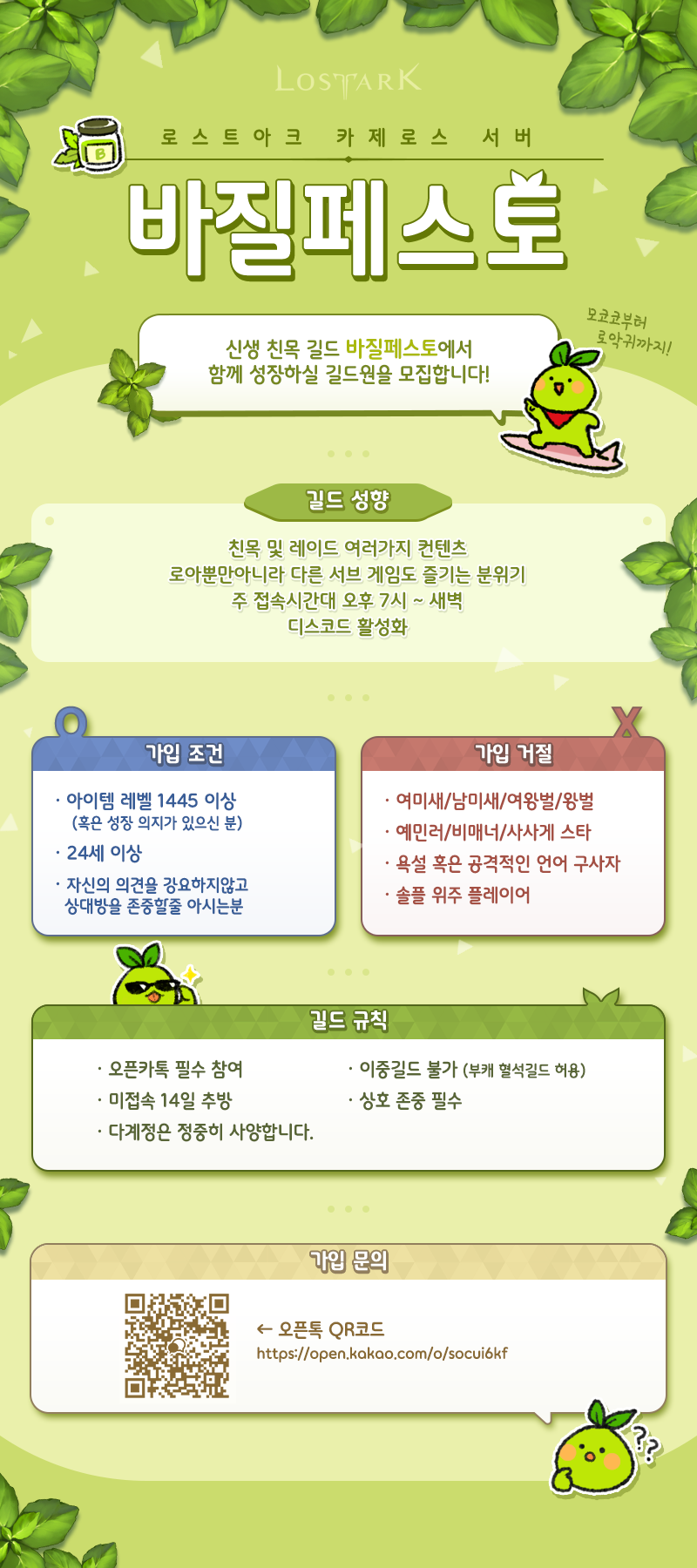 카제로스 ⭐친목길드 바질페스토⭐길드원 모집중⭐ Lv.69 뽀사지다 STOVE50915908 유저 정보 2023.07.19 23:09 356 성장의지 있는 모코코분도 환영입니다!!가입문의 https://open.kakao.com/o/socui6kf 좋아요 0 공유하기 페이스북 공유하기 트위터 공유하기 카카오톡 공유하기 URL 복사하기 닫기 ❤✨[황홀]✨❤ 길드 신입 길드원을 모집합니다. 니나브 Lv.20 친목길드 [낭만모코코들] 에서 길드원을 모집합니다. 목록보기 댓글 0 댓글 쓰기 등록 더보기