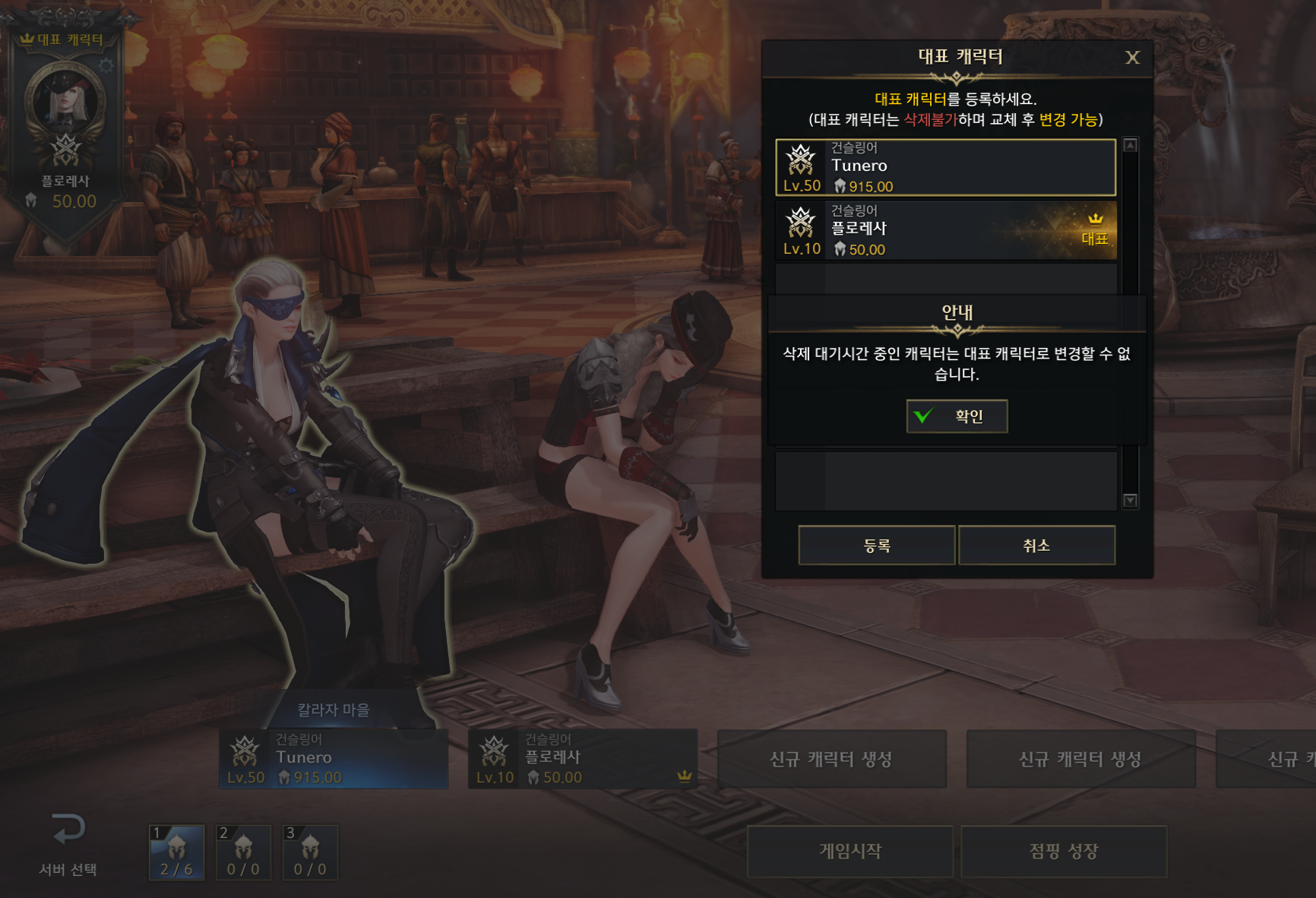 클래스 및 캐릭터 대표캐릭터 변경 - 삭제대기 시간