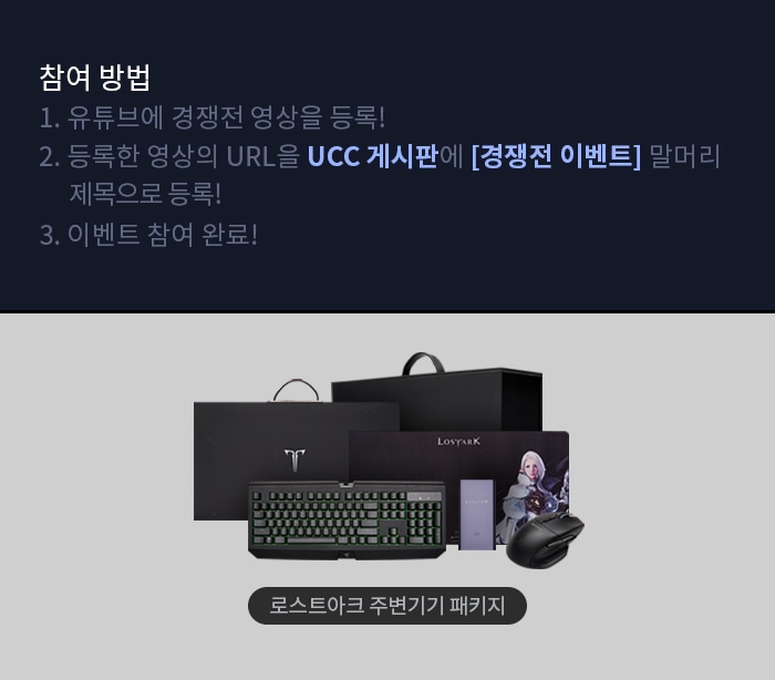 UCC게시판에 경쟁전 영상을 공유해 주신 모험가님께 추첨을 통해 특별한 선물을 드립니다.